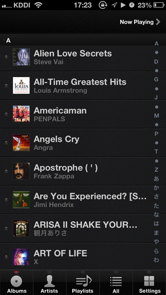 こちらも再生アプリとしての基本インターフェースは普通で、違和感なく利用できる。iTunesの(ミュージックアプリの)プレイリストも流用される