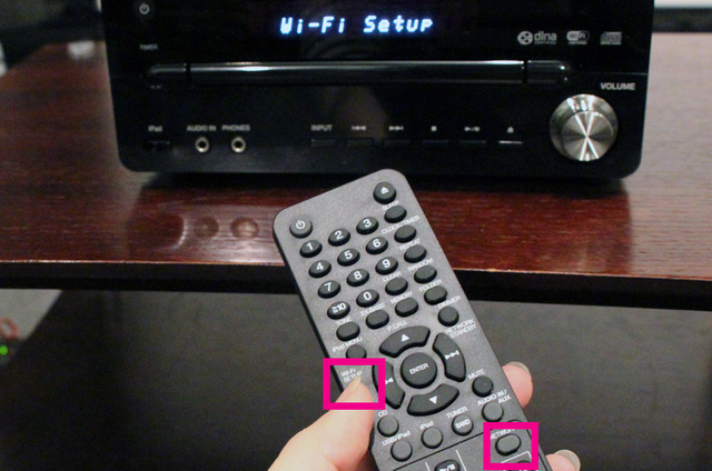 「ダイレクトワイヤレス接続」は使い方もかんたん。まずリモコンの「NETWORK」ボタン(右下)を押し、次に「Wi-Fi SETUP」(左上)を押す。出てきたメニューから「Wi-Fi SETUP」を選び、「ENTER」で決定