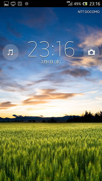 ロック画面からカメラとウォークマンアプリを直接起動可能。それぞれのアイコンを横にスワイプして起動する