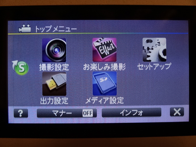 親しみやすいカラフルなデザインを採用したトップメニュー。マナーモードもここで設定