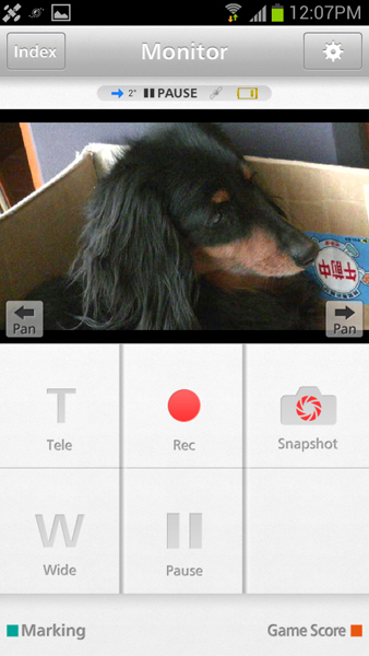 「Everio Sync.2」で遠隔操作した際の画面。パンニング用クレードルを動かす「PAN」表示が左右にあるのが分かる
