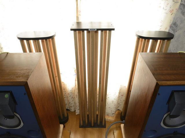 「シルヴァン」(¥210,000/1本)はスピーカーの背面に2本。中央には幅40cmの特注「アンク」(通常は60cm)を設置している