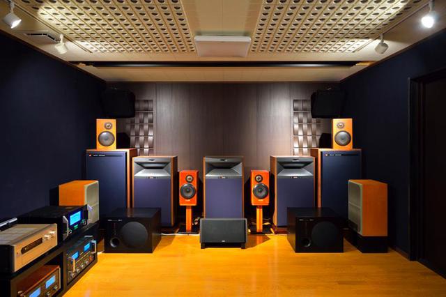 DAIKENのトータルソリューションによって音環境が整えられた空間に様々なスピーカーが並ぶ