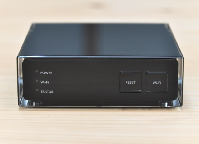 「Remote TV」のフロントパネル。POWER/Wi-Fi/Statusのインジケーターと、RESET/Wi-Fiの2つのボタンが配置されている