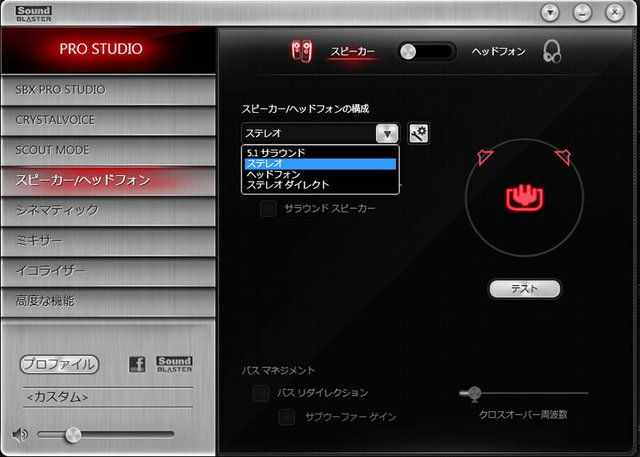 HOME > レビュー > レビュー記事一覧 【特別企画】オーディオファンならではの使い方にも対応 ASIO/ハイレゾ再生の音質や高級ヘッドホンとの相性は? − サウンドカード「Sound Blaster ZxR」実力徹底チェック 岩井喬 2013年04月05日 次の写真へ コントロールパネルの「スピーカー/ヘッドフォン」内の「スピーカー/ヘッドフォンの構成」から「ステレオダイレクト」モードを選択することでハイレゾ音源を楽しめるようになる 次の写真へ この写真の記事へ 関連リンク クリエイティブメディアによる製品情報