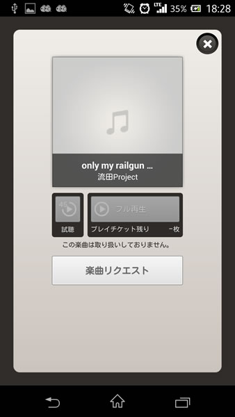 取り扱っていない楽曲も検索結果には表示され、リクエストを送信できる