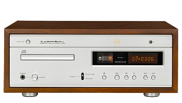 木製ケースが印象的なラックスマンの38シリーズ。写真はCDプレーヤー「D-38u」