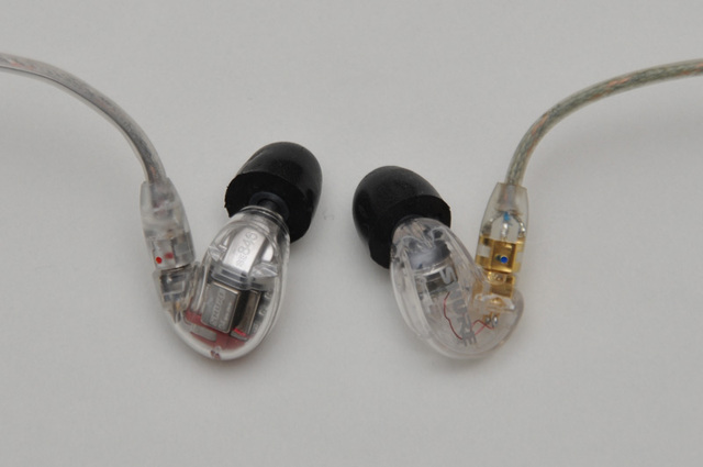 左がSE846、右がSE215のそれぞれクリアカラーのモデル。SE846の方がハウジング、ケーブルともに透明度が高い