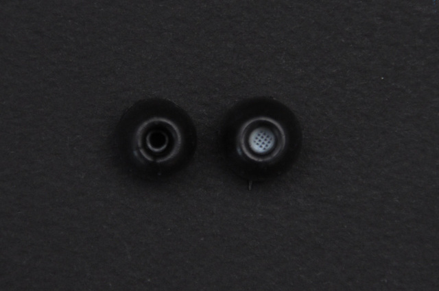 フィルター付のフォームイヤパッド(写真右)。左側はフィルターなしのイヤパッド