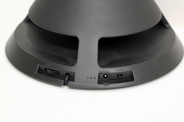 背面に設けられたステレオミニ端子でスマートフォンと接続する