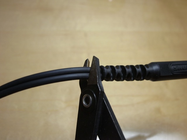 1)ケーブルの出力プラグの手前をニッパーでぶった切る!正直ちょっと勇気がいる作業だ。ケーブル交換可能なイヤホン/ヘッドホンでないとこわくて踏み切れない
