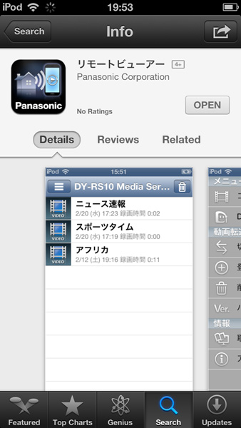 視聴アプリ「リモートビューアー」は無料で利用できる。今のところまだiOS用アプリしか登場していない