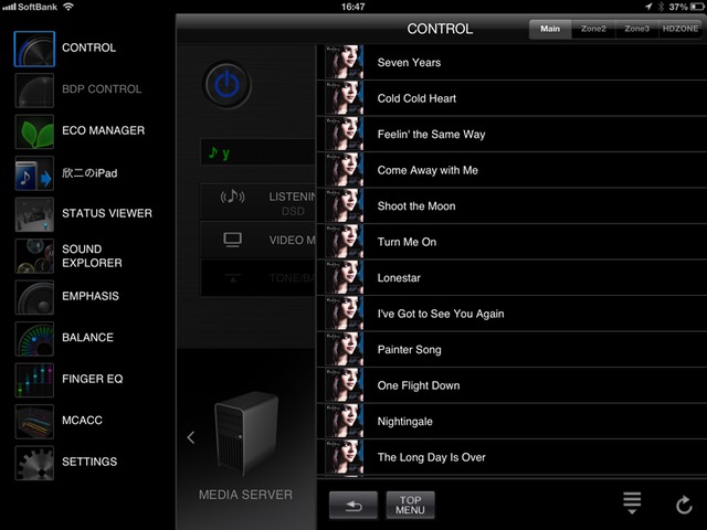 「iControlAV」からのネットワーク再生の操作性も格段に向上。表示枠を拡大してのアルバムや楽曲タイトル一覧が可能となり、アートワーク表示にも対応した