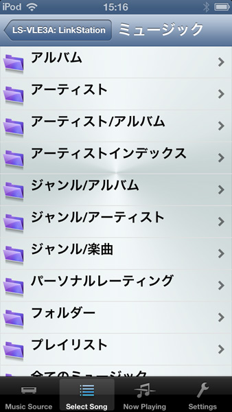 アルバム、アーティスト、ジャンルなどでリスト表示が可能