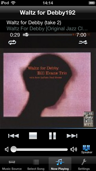 AirPlayでの再生時。右下側メニューバーの「Speaker」アイコンをタップ