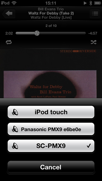 AirPlayでの再生時。SC-PMX9をスピーカーとして選べる