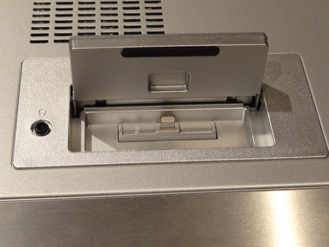フタを開けるとそのままiPhoneの背面を支えるホルダーになる。左側にはヘッドホン端子を搭載