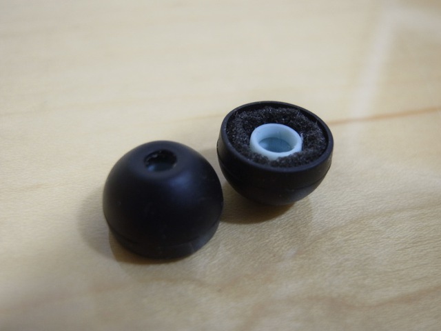 ソニーのノイズアイソレーションイヤーピース。かさの内側にこのようにスポンジ状の素材が仕込まれている