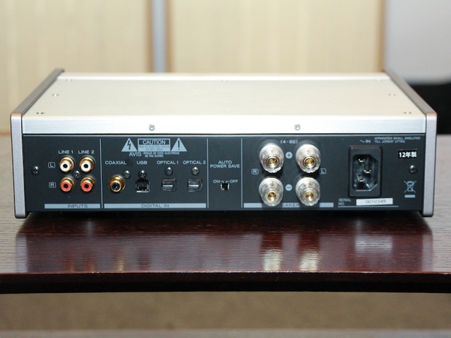 AI-501DAの背面端子部。アナログRCA2系統の他、USB、同軸デジタルを各1系統、光デジタルを2系統と豊富な入力端子を搭載