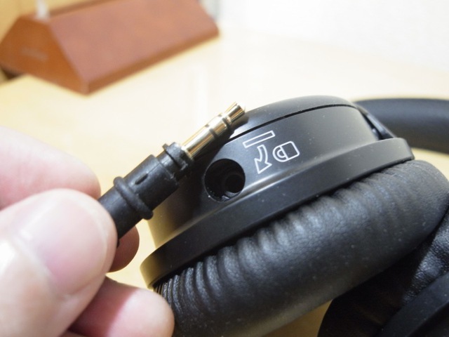 ケーブル着脱式。プラグと穴の凹凸を合わせて挿入し、回転させてロックする