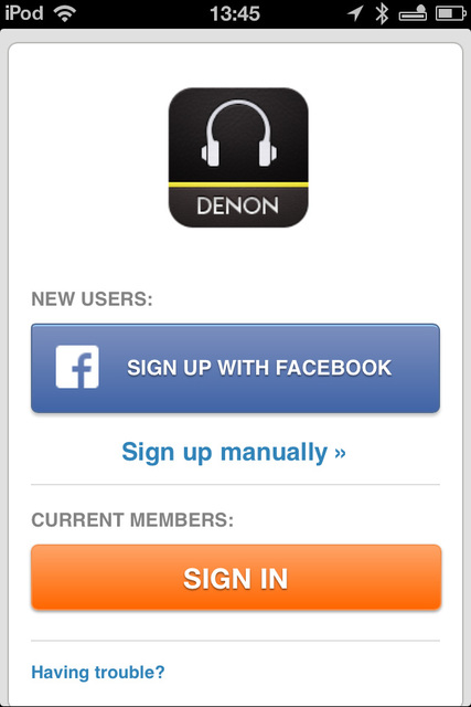 専用アプリは使用する前にログインが必要。Facebookアカウントでもログイン可能だ