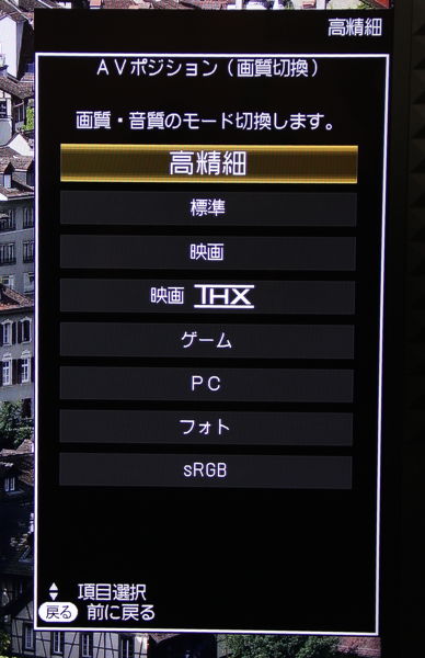 本機は映画視聴向けの画質モードとして、「映画」「映画THX」の2種類を用意している