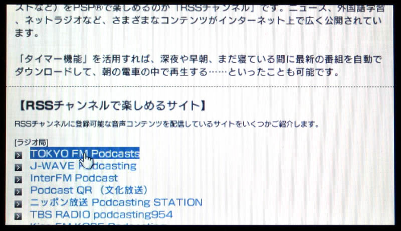 HOME > レビュー > レビュー記事一覧 YouTube・ワンセグ・ポッドキャストetc... 【一条真人のPSP再入門】第2回:PSPのAV機能を徹底的に使いこなせ! 一条真人 2008年09月26日 前の写真へ 次の写真へ スターターページからポッドキャスト登録したい放送局を選択できる 前の写真へ 次の写真へ この写真の記事へ 関連リンク PSPの製品詳細