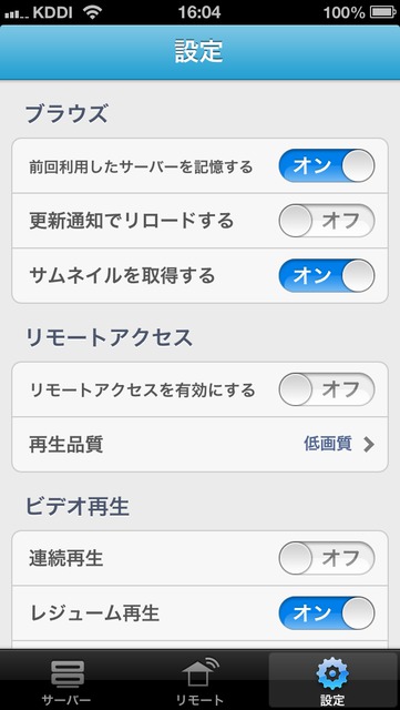 DTCP+のサポートにより、設定画面には「リモートアクセスを有効にする」スイッチが追加されている