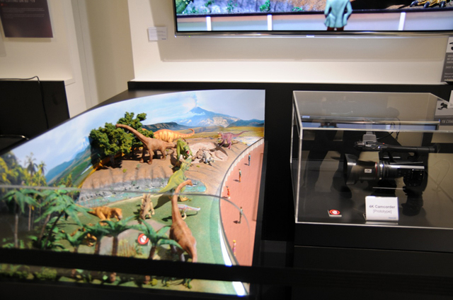 4Kカメラの試作機で恐竜の模型を撮影し、質感表現の高さをアピール。