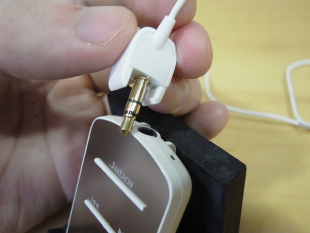 イヤホン着脱。単純にプラグを差し込むだけではなくその周囲の樹脂パーツに爪が設けられており、ペンダント装着時の固定力を確保