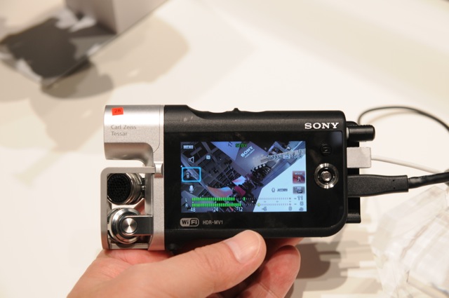 楽器演奏の高画質・高音質収録を狙ったHDR-MV1。NFCとWi-Fiに対応し、X-Y配置の高性能マイクを内蔵。レンズはツァイスのテッサーを奢る。