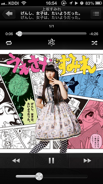 iOS 6の「再生中」画面。操作パーツが画面の上下に分かれている