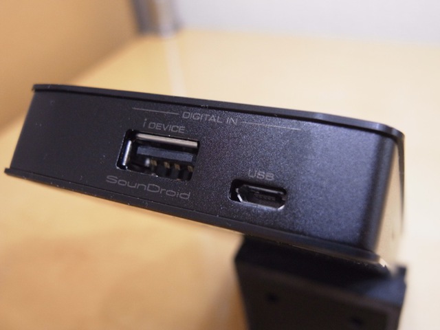 背面側の入力端子はiOS機器接続用のUSB A端子とPC接続用のUSB miniB端子