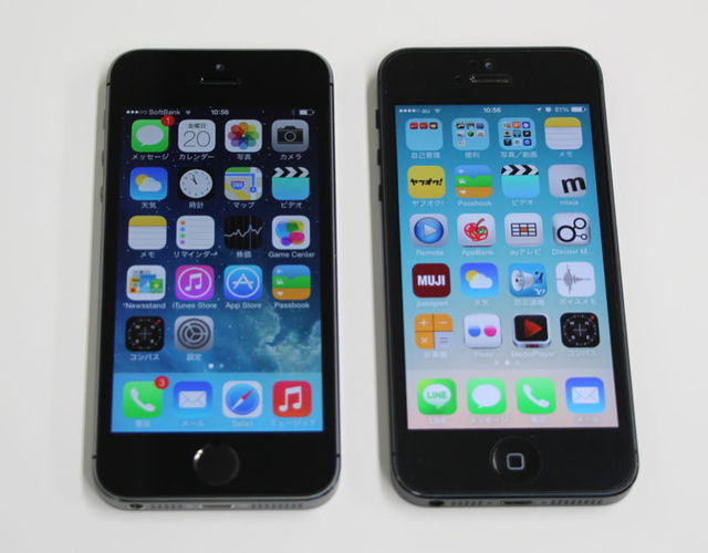 左がiPhone 5s(スペースグレイ)、右がiPhone 5(ブラック&スレート)。ホームボタンで見分けられる