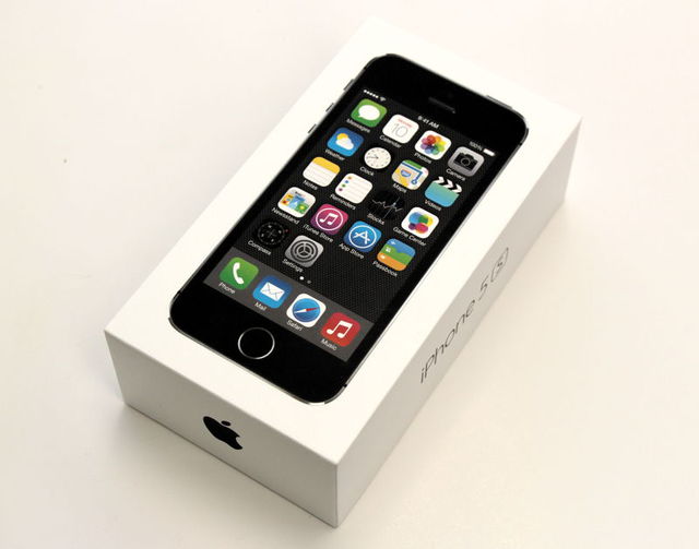 iPhone 5sの外箱。iOS 7のデザインを前面に押し出して進化した印象をアピール