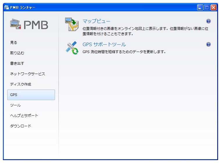 GPSサポートツールはPMBランチャーのGPSメニューから起動できる