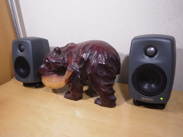 木彫りのクマと並べてもこの程度のサイズ感で実にちょうどよい