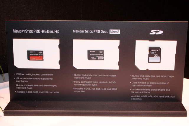 サイバーショットが対応したメモリーメディア。SDカード(右端)はソニーブランドでも発売される
