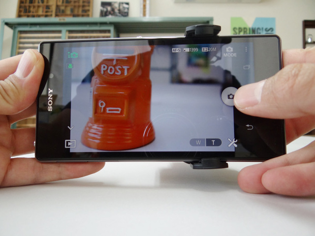 本体の真裏にシャッターアイコンが表示され、何となく操作しづらく感じられた