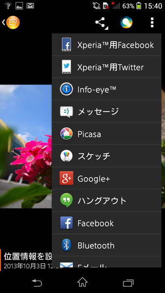 アルバムアプリから各種SNSサイトへの共有など、ダイレクトに遷移できる