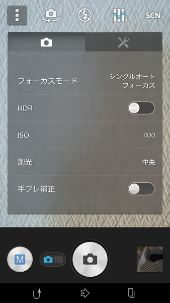 マニュアルモードではHDRのオン/オフなどが設定可能