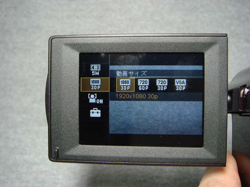 動画解像度の設定画面。顔認識機能も備えている
