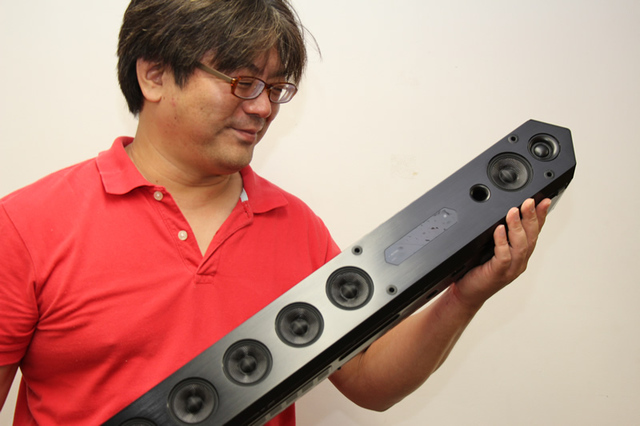 HT-ST7の仕上げをチェックする野村氏。「高級モデルにふさわしい質の高い仕上げも魅力」と評価