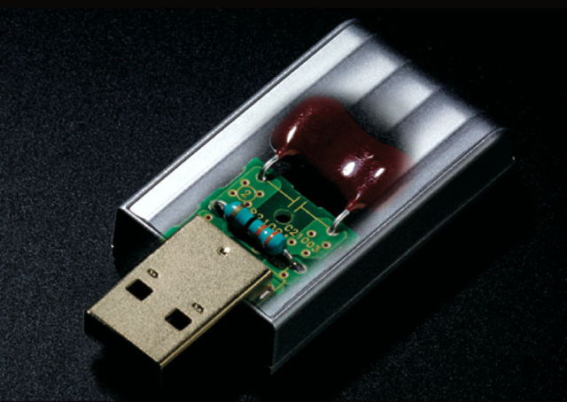 「USBパワーコンディショナー」。本機の使っていないUSB端子に装着することで、内部の電源ノイズを低減し、音質を向上させる