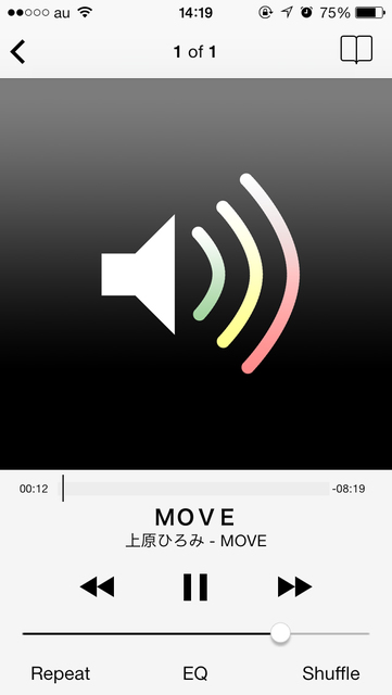 192kHz/24bitのFLACファイルをすんなり再生中の画面。アートワークをタップすると情報画面に切り替わり…