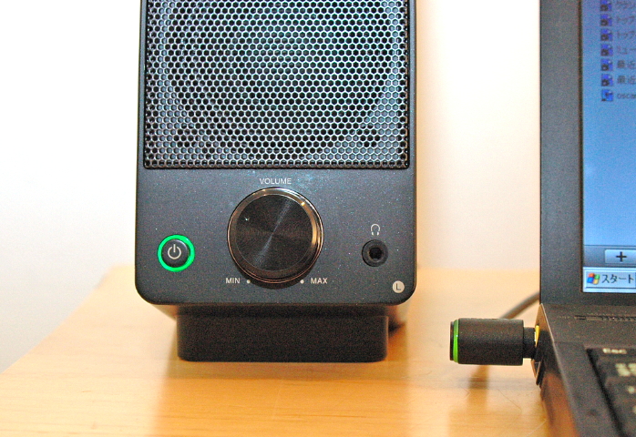 左スピーカーのフロントにヘッドホン端子が装備