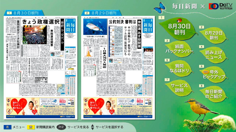 ブラウザがコンテンツのフルHD表示に対応している点も、他社と一線を画するポイントなので注目して欲しい。毎日新聞の紙面が読めるのはAQUOSだけなのだが、実際に試してみると、フルHDの高精細な表示能力を活かし、誌面を俯瞰しながら一つ一つの文字までハッキリと読める。まさに実際の新聞を読んでいる感覚だ。