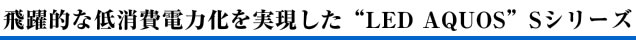 前述した、前モデル比で約40%に及ぶ低消費電力化は、あくまでもカタログに記載される「年間消費電力量」の話である。これらは、LEDバックライトとUV2A液晶パネルによる根本的な技術革新による飛躍的な低消費電力化や、機能をシンプルにしたり、細部まで回路を見直す事で実現されている。