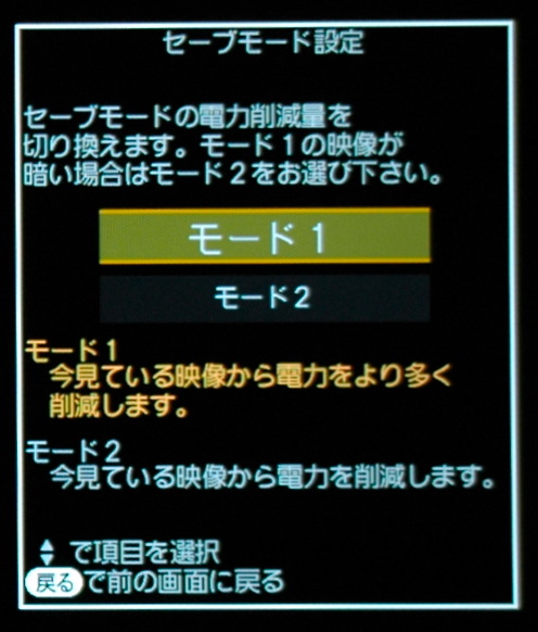 | セーブモードは2種類から選択可能(左)。実際の節電効果をモニターする機能も備える(右) |