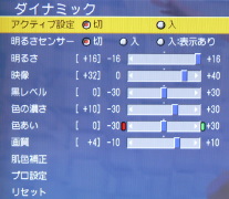 では、実際にAQUOS DS6ラインを明るい部屋で視聴してみよう。明るい環境では、テレビ局の制作現場で使用されているスタジオモニターと同じ9,300Kの色温度に設定される。店頭デモ用映像を再生すると、赤の力強さ、透明感あるブルーと、明部の鮮烈な色再現が印象的だ。同時に暗部もしっかりと締まり、暗部階調が表現できていることにも注目したい。